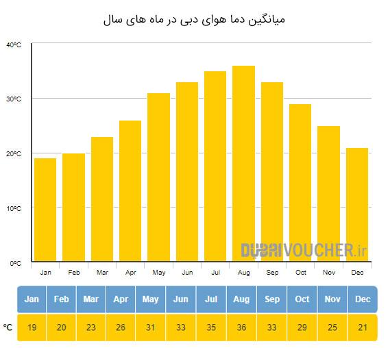 میانگین دما آب و هوای شهر دبی برای سفر در ماه های مختلف سال